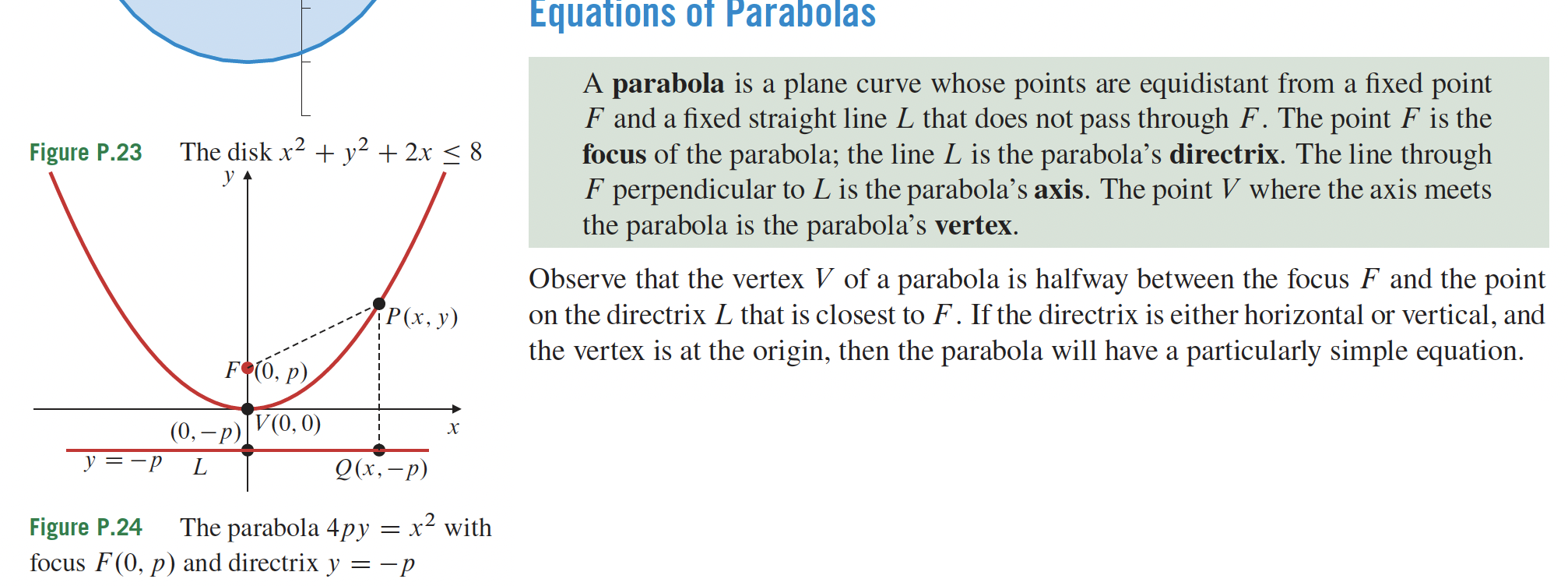 - Le sommet S est équidistant au foyer F et à la directrice.