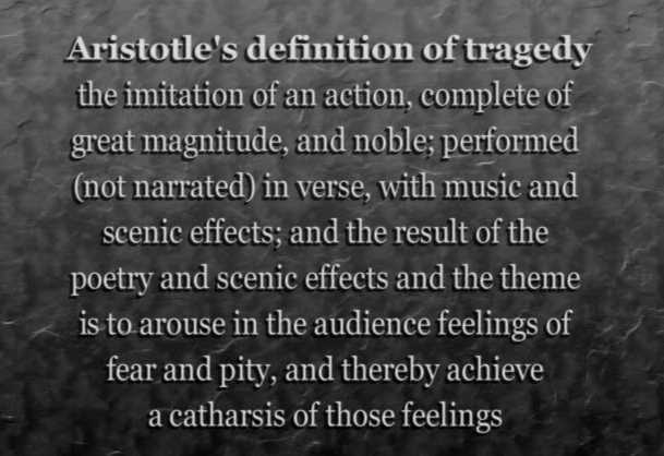 Aristotle wrote The Poetics in the latter part of the 4th century B.C.; however, it reflects his thoughts regarding the great poets of the previous century—Sophocles, Aeschylus, and Euripides. In it, Aristotle provided a definition of tragedy: A tragedy is an imitation of an action that is complete, of great magnitude, and noble. The tragedy is performed, not narrated. It must be performed in verse with music, and performances must include scenic effects.