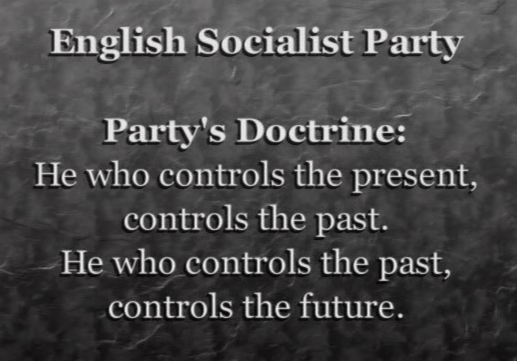 Thought is also controlled. The thought police are the most dreaded instruments of control. They operate from the Ministry of Love. Winston Smith’s job at the Ministry of Truth is to fabricate history, because one slogan of the Party is that he who controls the present controls the past and he who controls the past controls the future.