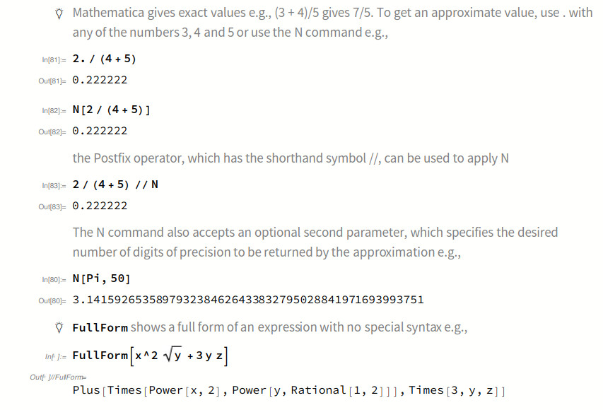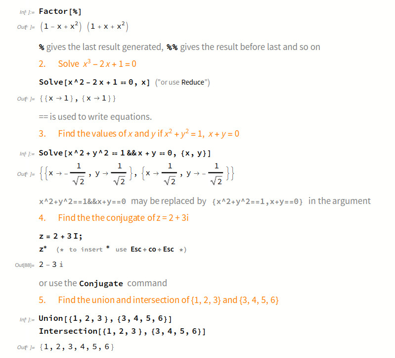| How to | Use Brackets and Braces Correctly The Wolfram Language’s rich syntax uses different kinds of brackets and braces; familiarity with these aspects lets you read and program efficiently in the Wolfram Language. Parentheses ( ), braces { }, and square brackets [ ] all have different meanings in the Wolfram Language. The first two are sometimes called round brackets and curly brackets. You use parentheses ( ) in the Wolfram Language for grouping expressions and to determine the precedence of operations. A list in the Wolfram Language is represented by braces { } and is a collection of items referred to as elements. Square brackets are used in the Wolfram Language to enclose the arguments of functions. The functions Range, Sin, and N are used here with square brackets enclosing their arguments: |