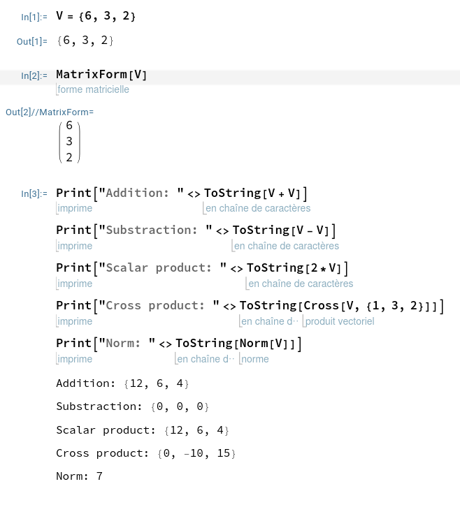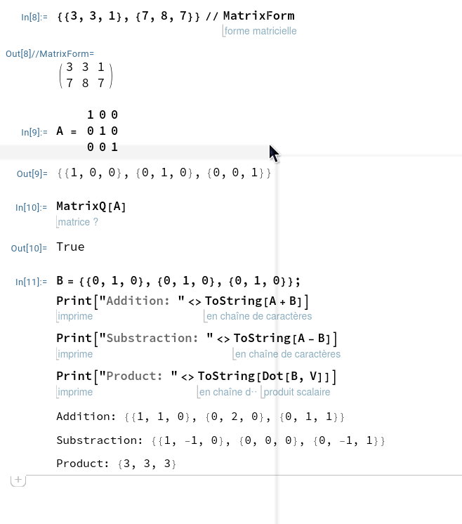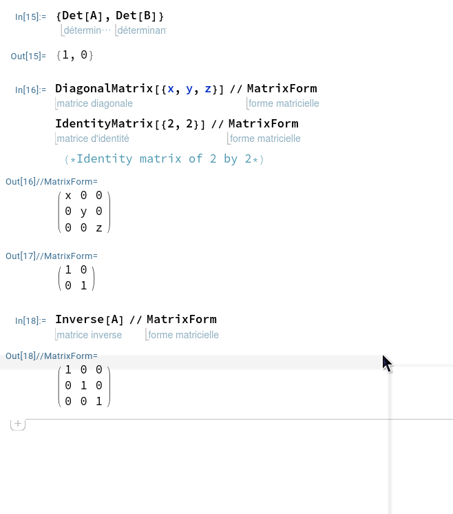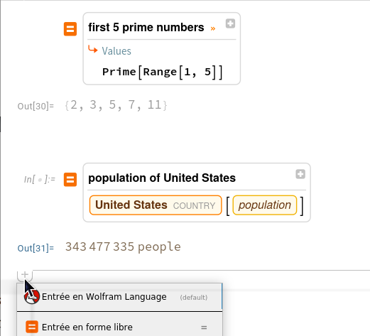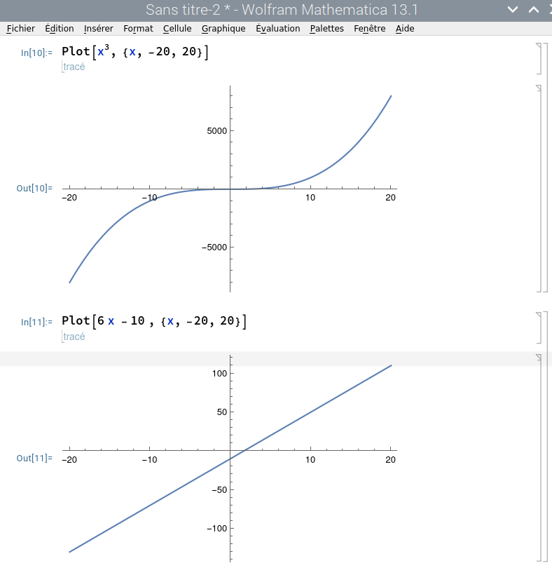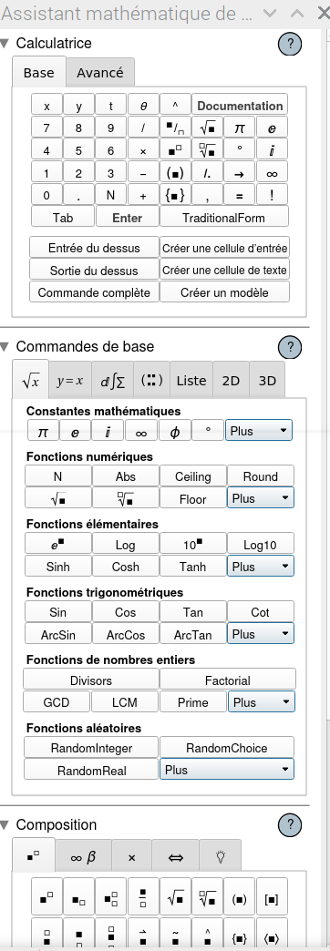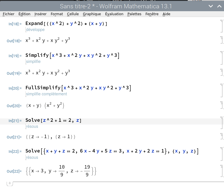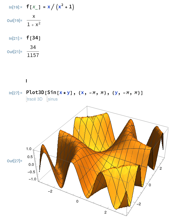 On peut entrer les instructions en utilisant les commandes de Mathematica ou bien en entrée en forme libre: