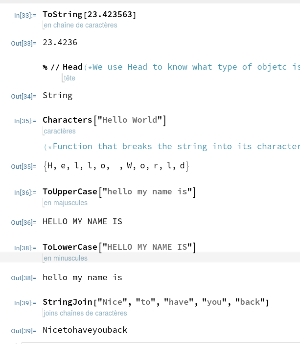 On retrouve toute une série de fonction toujours utiles en programmation pour l’utilisation de chaines de caractères: