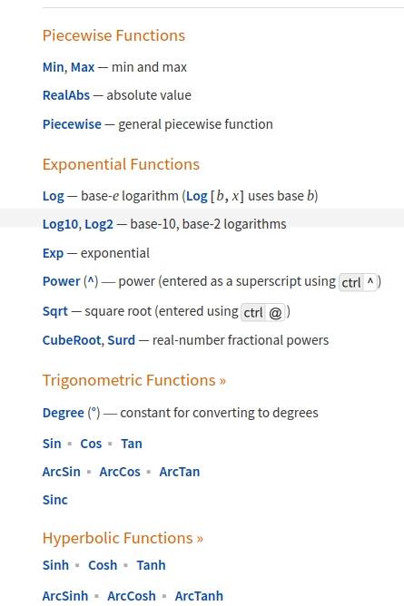 On retrouve les fonctions mathématiques de base, et d’autres qui seraient intéressantes à étudier: