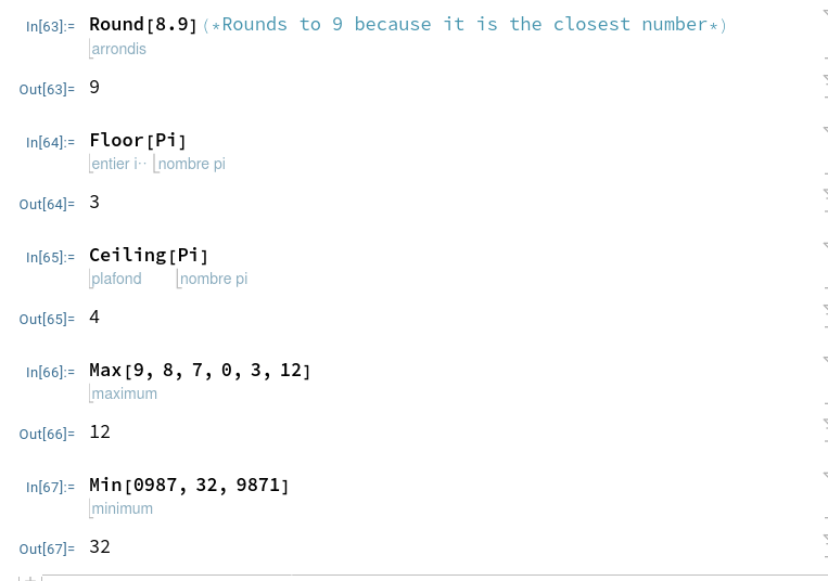 Les fonctions importantes en programmation demeurent celles pour arrondir des nombres réels avec valeur supérieure ou inférieure: