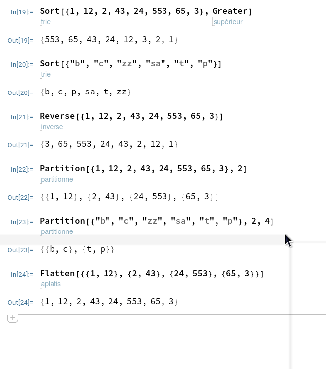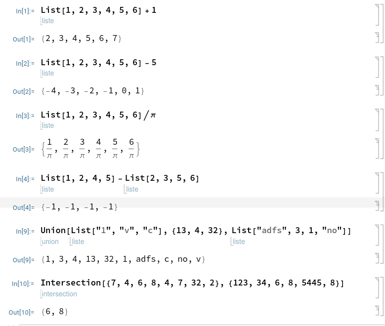 - On peut faire rechercher les éléments communs à 2 listes, ce qui est très fort comme outil (Intersection)