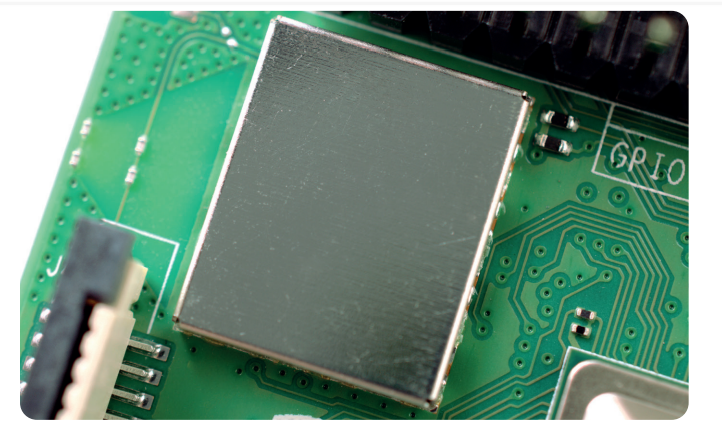 - Le bloc en aluminium contient le récepteur/émeteur radio WiFi et BlueTooth